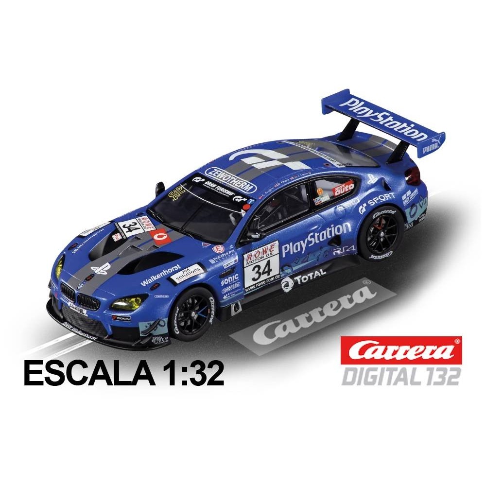 El Coche Carrera Digital 132 BMW M6 GT3 Walkenhorst n34 reproduce a escala 1:32 para sistema Digital Carrera el coche azul con decoración de Playstation heredero del gran campeón BMW Z4. Con su potente motor V8 Twin Turbo, llegaba hasta los 585 cv de potencia en pista dejando atrás a sus rivales.