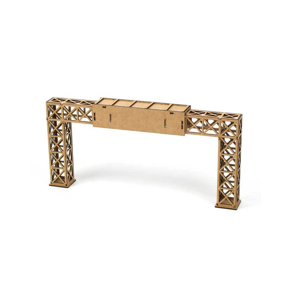 Con el Puente de Publicidad Extensible de Madera Circuito de Slot tienes un conjunto de piezas para montar un pa pasarela por encima de la pista y decorarla con pegatinas o publicidad. Además es extensible por lo que se puede adaptar a tu ancho de pista.