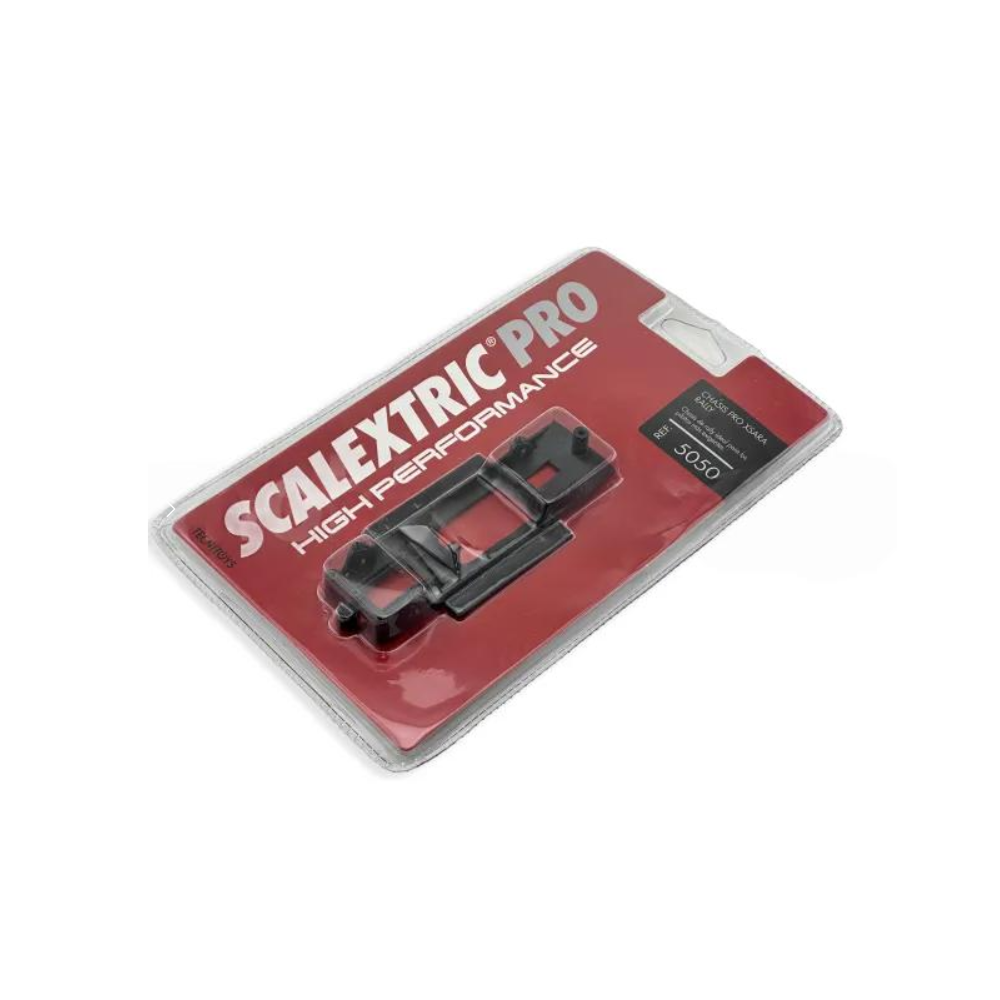 Chasis de recambio para Citroën Xsara PRO Rally, diseñado para slot 1:32 de competición. Incluye brazo de suspensión para mejorar la estabilidad y el paso por curva. Repuesto original SCX PRO, ideal para rally y tramos técnicos exigentes.