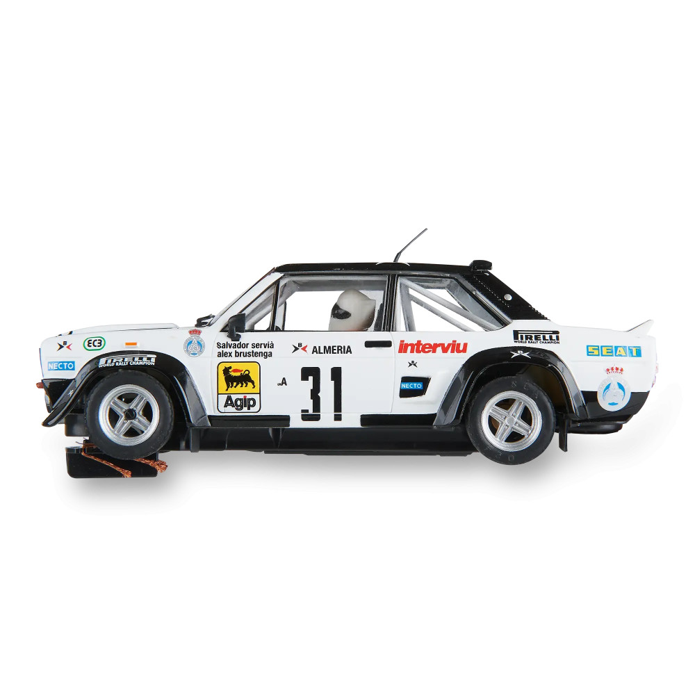 Abarth 131 de S. Servià – Rally de Montecarlo 1979, con decoración clásica y gran nivel de detalle. Compatible con circuitos Scalextric Classic, ideal para competir o coleccionar.