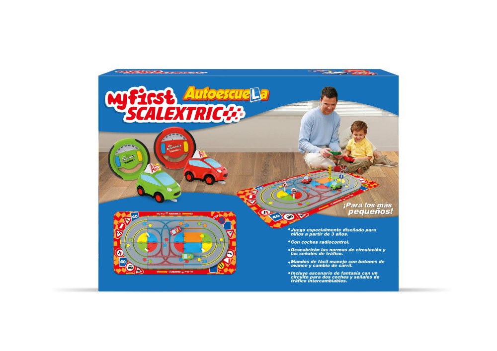 Compra My First Scalextric Autoescuela, el circuito infantil desde 3 años. Incluye dos coches radiocontrol con claxon incluido, mandos adaptados y señales de tráfico. Jugando aprendes en un FIUUU.