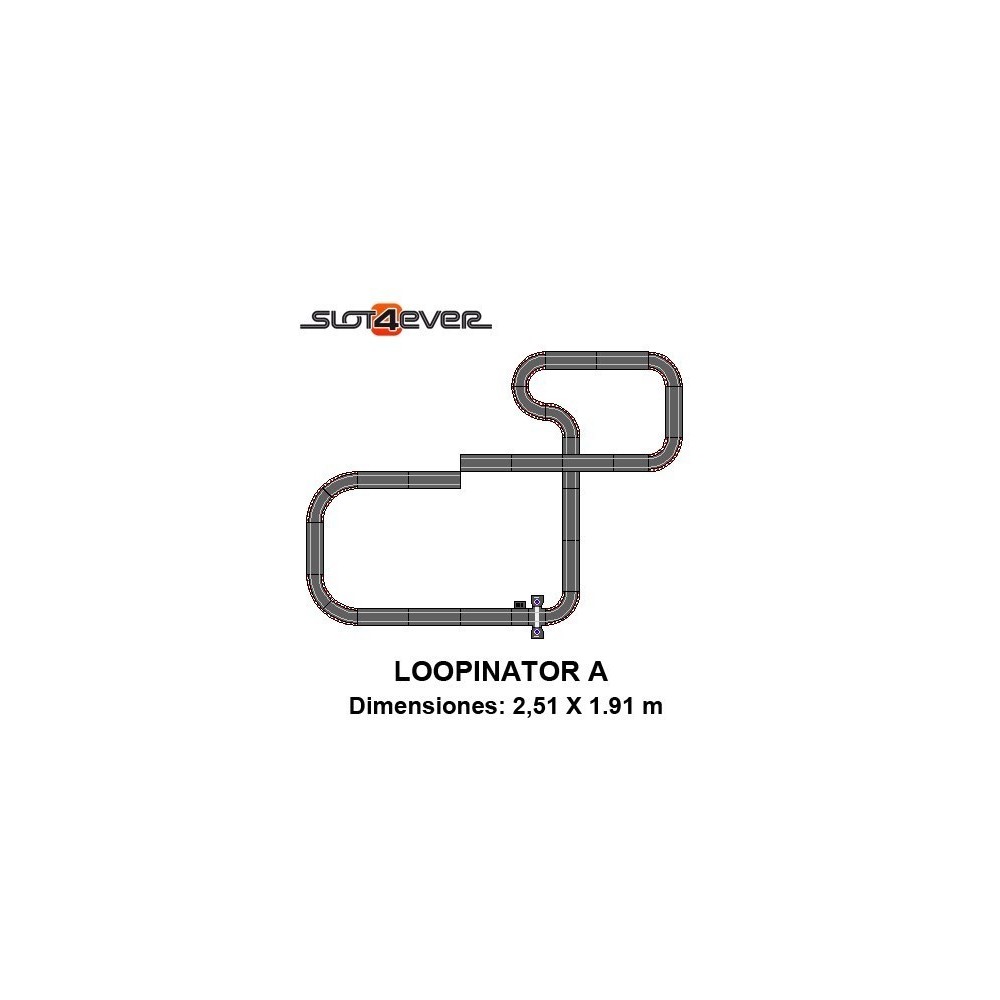 Diseñado y fabricado para los más pequeños, las pistas son fáciles de montar y puedes tener hasta 4 versiones con el mismo circuito. Además con este conjunto tienes un circuito+pack de pistas de ampliación para hacer tu circuito Loopinator más grande como en la imagen.