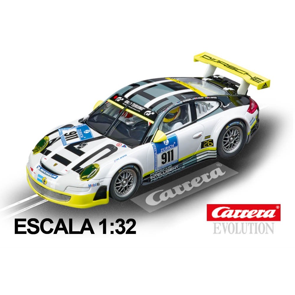 El Coche Carrera Evolution Porsche 911 GT3 RSR Manthey es el modelo a escala 1:32 del coche del equipo Manthey Racing que debutó en Nürburgring en 2016. Equipado con un potente motor boxer de 4L y 6 cilindros, desarrolla 450Cv de potencia en pista.