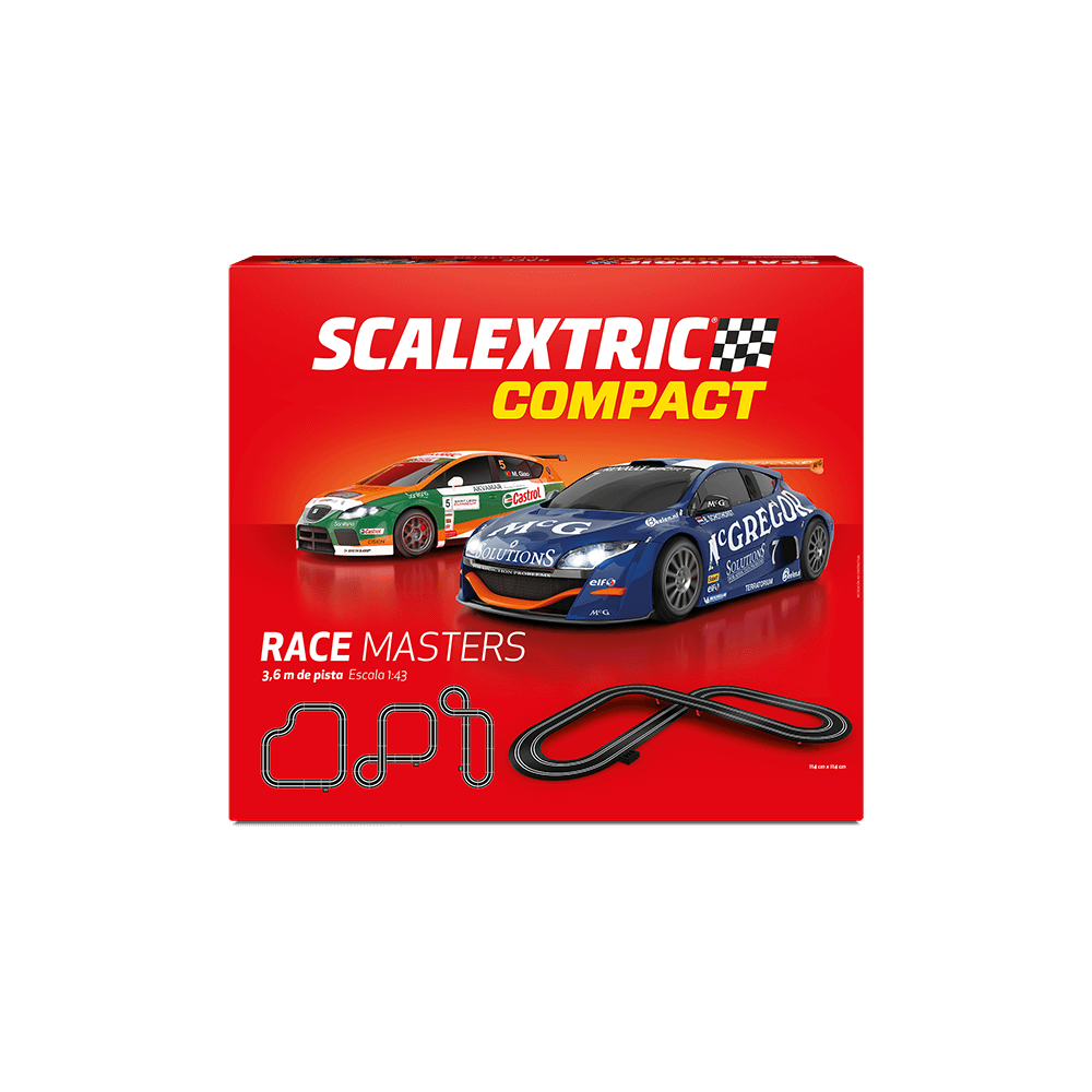 El Circuito de Scalextric Compact Race Masters es un circuito medio de la categoría Scalextric Compact. Incluye un paso elevado y 4 zonas de curvas. Las pistas incluidas tienen diferentes posibilidades de montaje, por lo tanto puedes montar hasta 4 versiones diferentes de circuito.