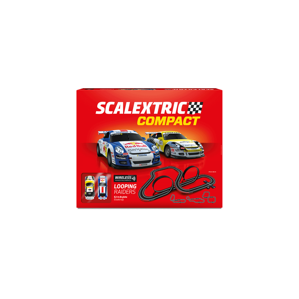 El Circuito de Scalextric Compact Looping Raiders es un circuito espectacular y el más completo dentro de la gama Scalextric Compact.