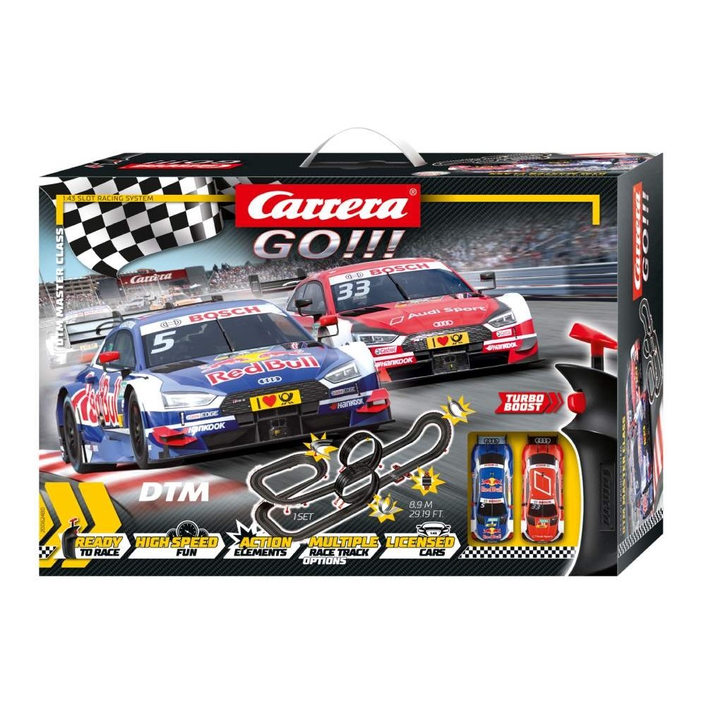 Con el Circuito Carrera Go DTM Master Class vivirás las carreras del DTM alemán con el duelo entre los dos audi RS5 de Red Bull y Audi Sport.