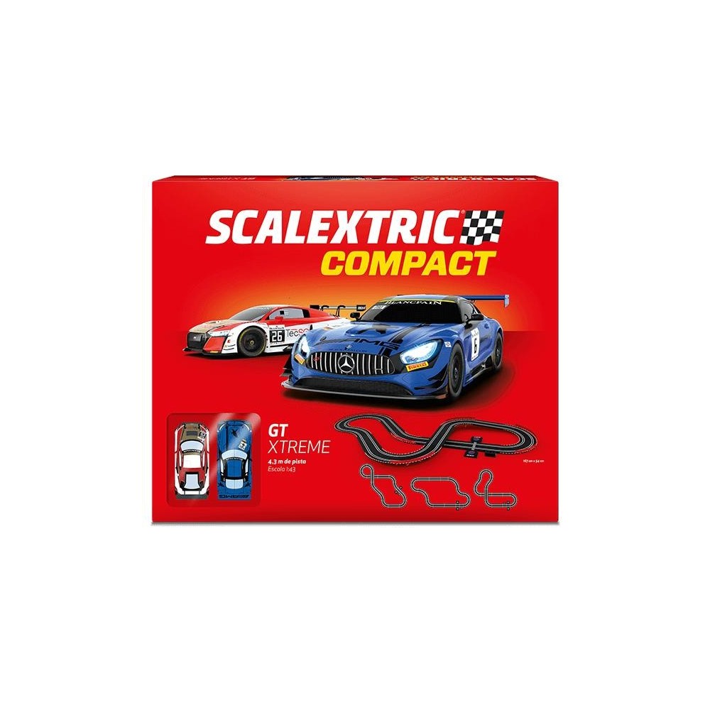 Scalextric Compact te permite tener la longitud de un circuito de Scalextric en un menor espacio. Están fabricados a escala 1:43 ,por lo que caben incluso en una habitación pequeña de casa.