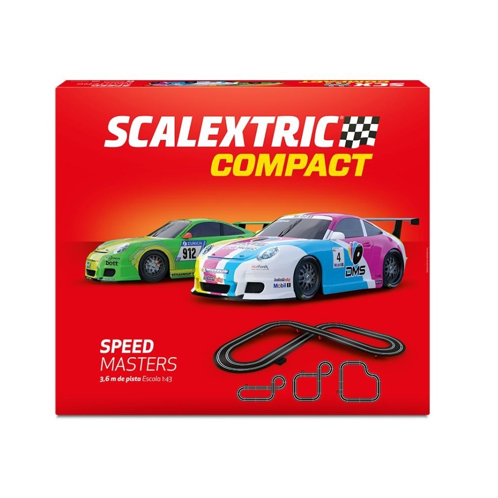El Circuito de Scalextric Compact Speed Masters es un circuito medio de la categoría Scalextric Compact. Incluye un paso elevado y 4 zonas de curvas. Las pistas incluidas tienen diferentes posibilidades de montaje, por lo tanto puedes montar hasta 4 versiones diferentes de circuito.