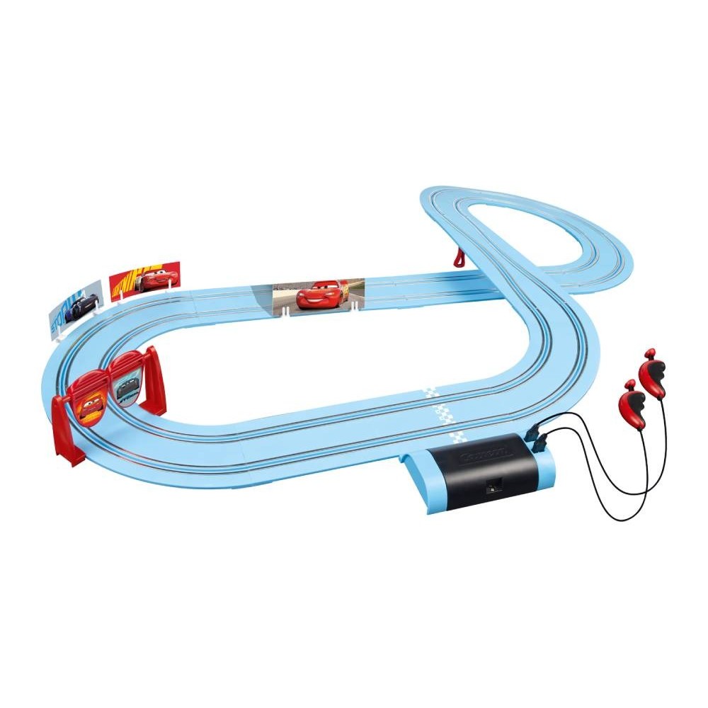 O circuito na forma de 8 alongado que inclui os carros de Relâmpago McQueen e Jackson Storm e também elementos de decoração relacionados ao filme.