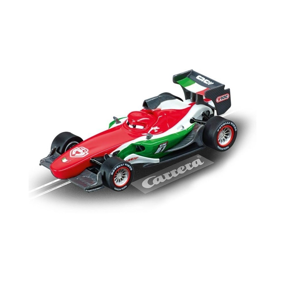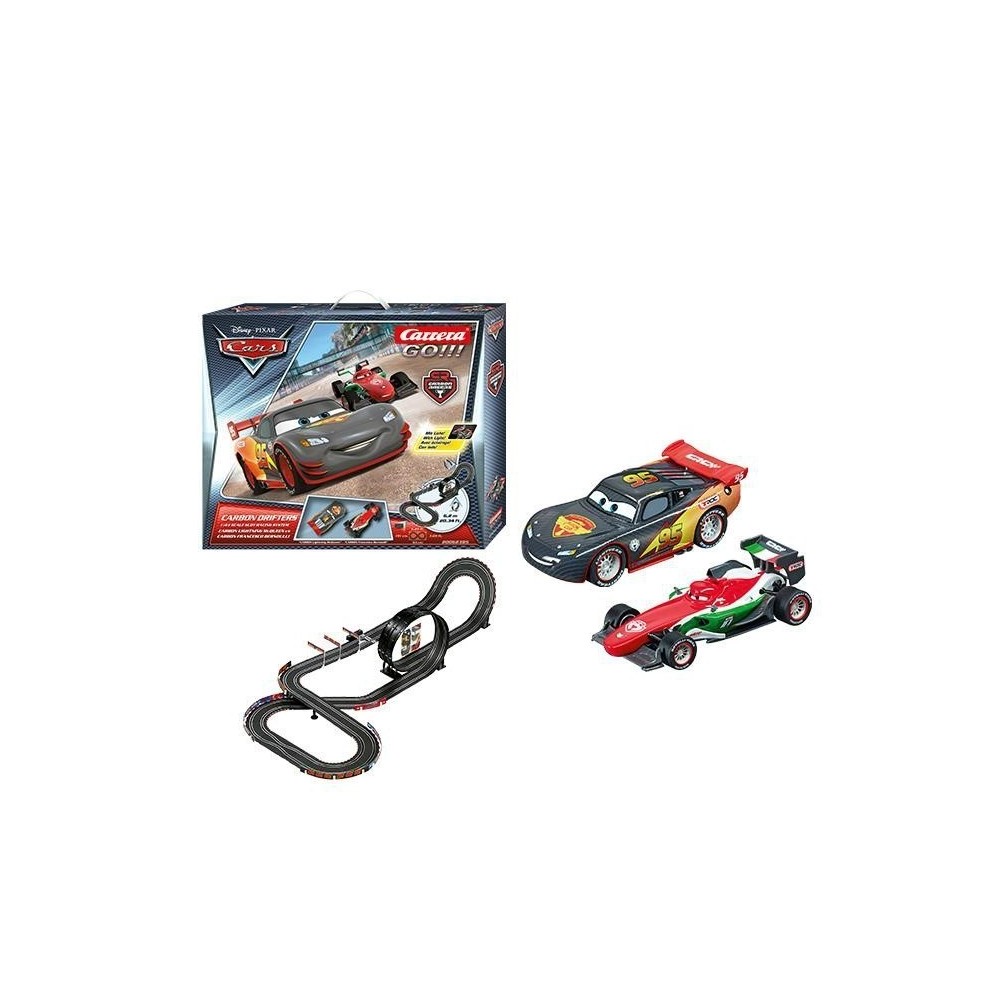 O Circuito Carrera Go Disney Cars Carbon Drifters é um circuito divertido do filme Carros e inclui o Carros Relâmpago McQueen e Francesco Bernouilli na versão Carbono com chassis iluminado. Também inclui um grande número de acessórios para torná-lo ainda mais divertido.