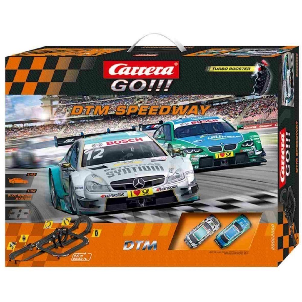 O Circuito Carrera Go DTM Speedway é o maior e mais completo dos circuitos Go. Este circuito tem uma extensão total de 9 metros e tem os seguintes destaques: