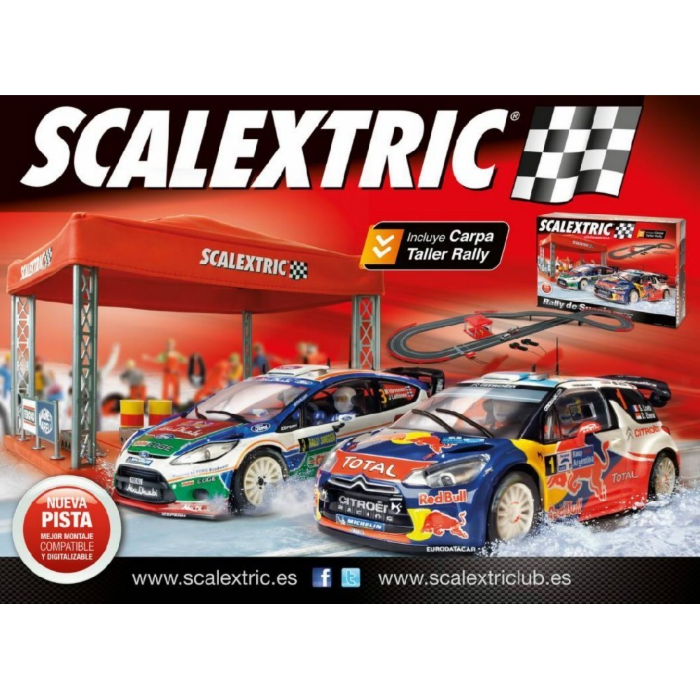 • 2 carros Scalextric (1 Ford Fiesta RS WRC e 1 Citroen DS3 WRC)