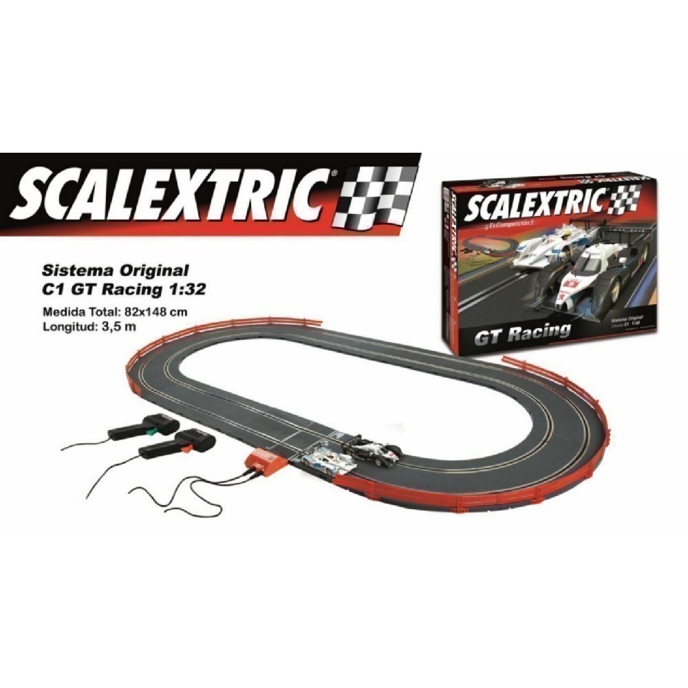 Circuito C1 GT Racing Analog Scalextric É o circuito de escala 1:32 no sistema analógico Scalextric mais básico. Inclui :