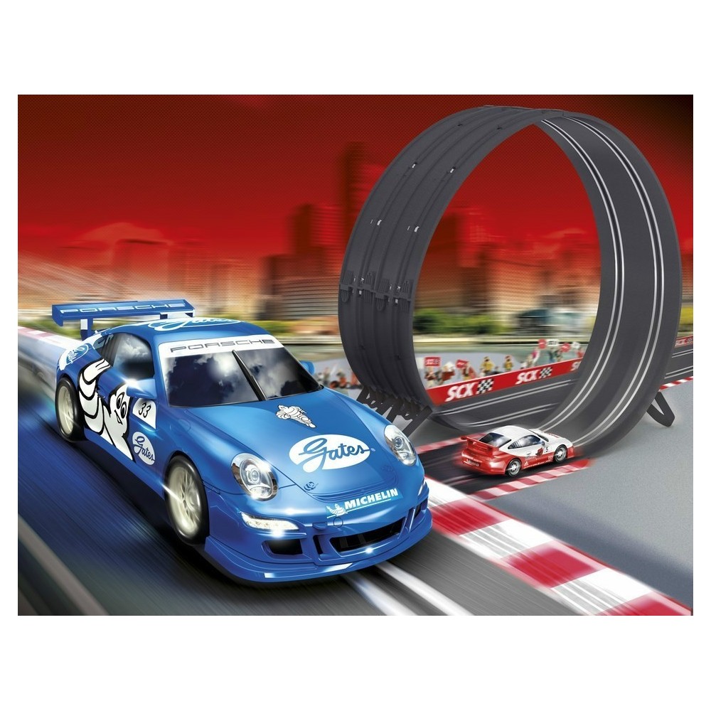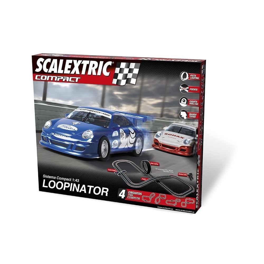Circuito de Scalextric Compact Loopinator com faixa em loop com o qual você pode desfrutar da rota normal de um circuito em um menos espaço.