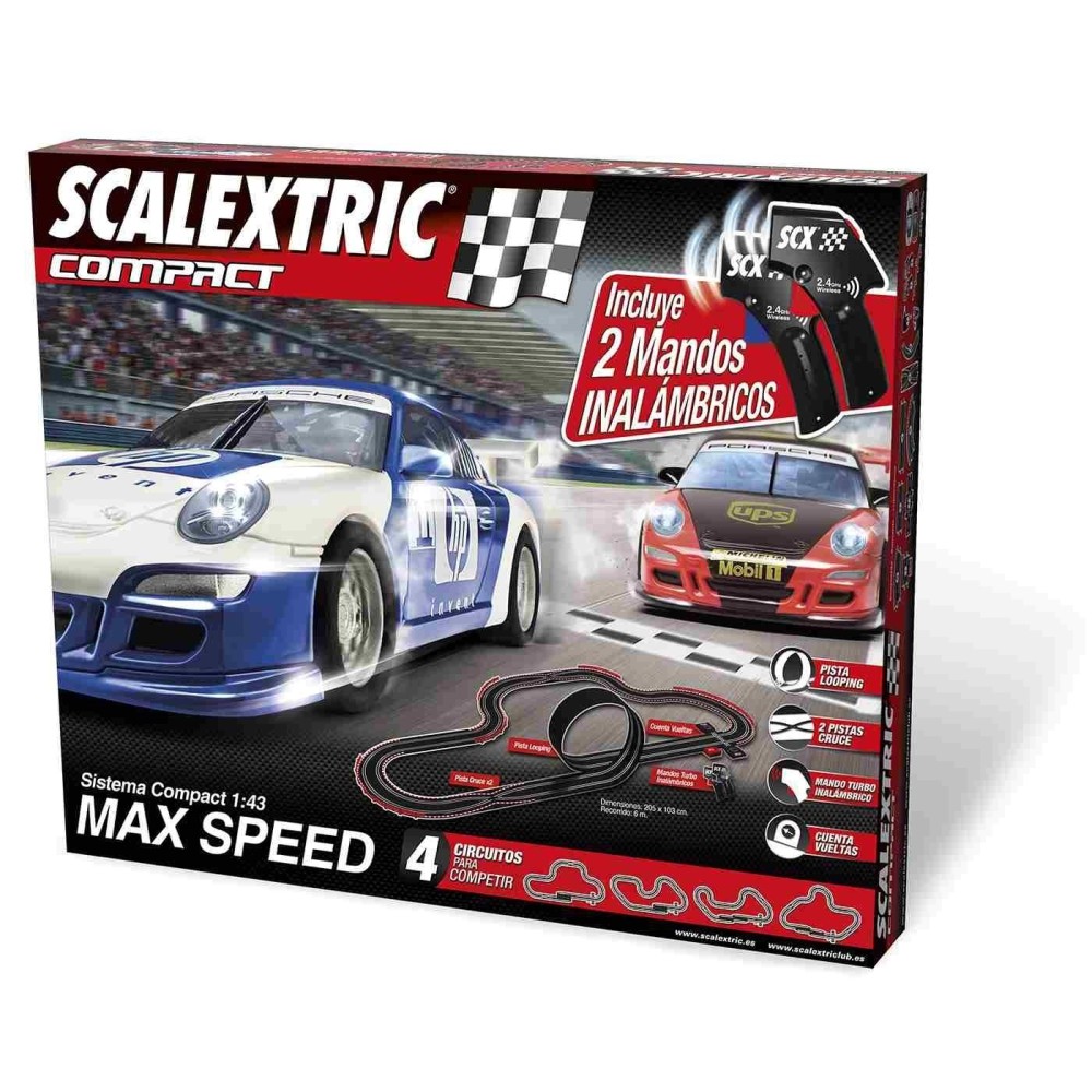 Circuito de velocidade máxima sem fio SCX compacto com o qual você pode executar com o controles sem fio no circuito mais completo da linha Scalextric Compact.