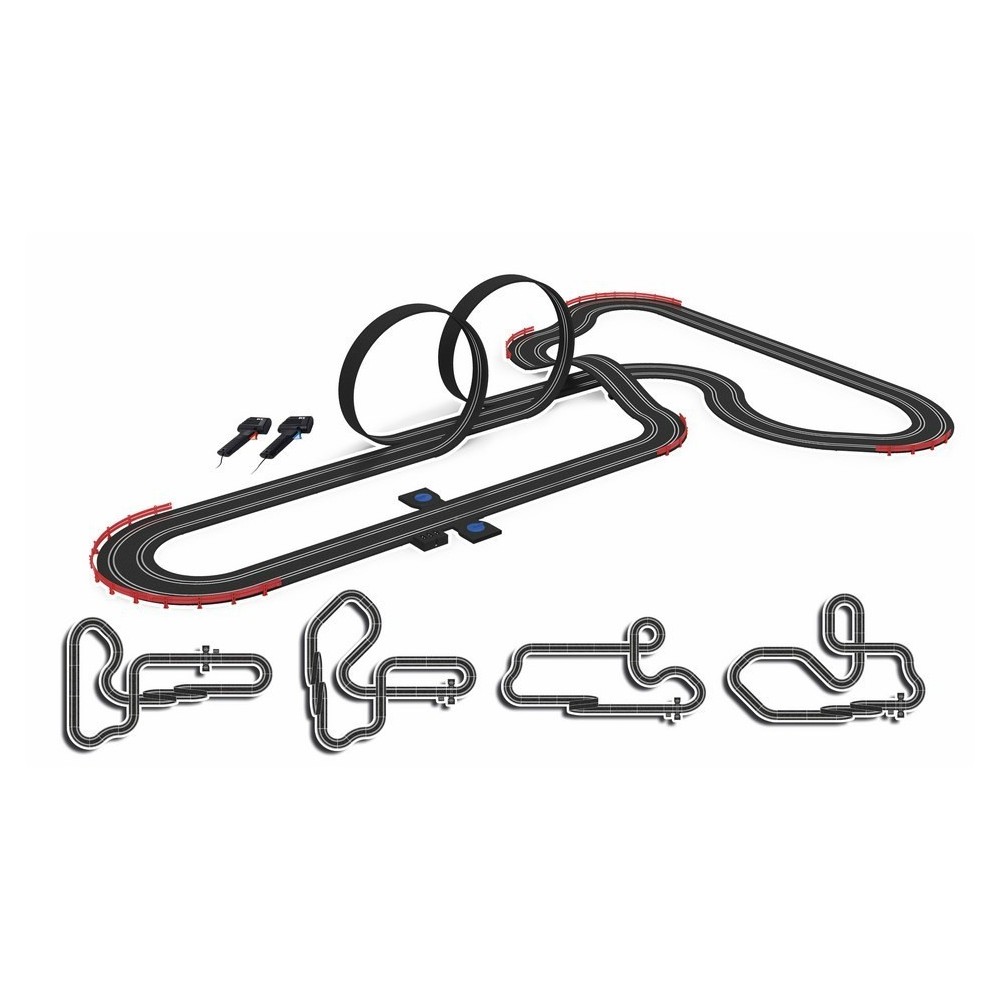 O Circuito Scalextric Compacto Desafio Tornado permite que você tenha um circuito Scalextric em um menos espaço, neste conjunto com Looping de trilha dupla , Dobre a diversão!