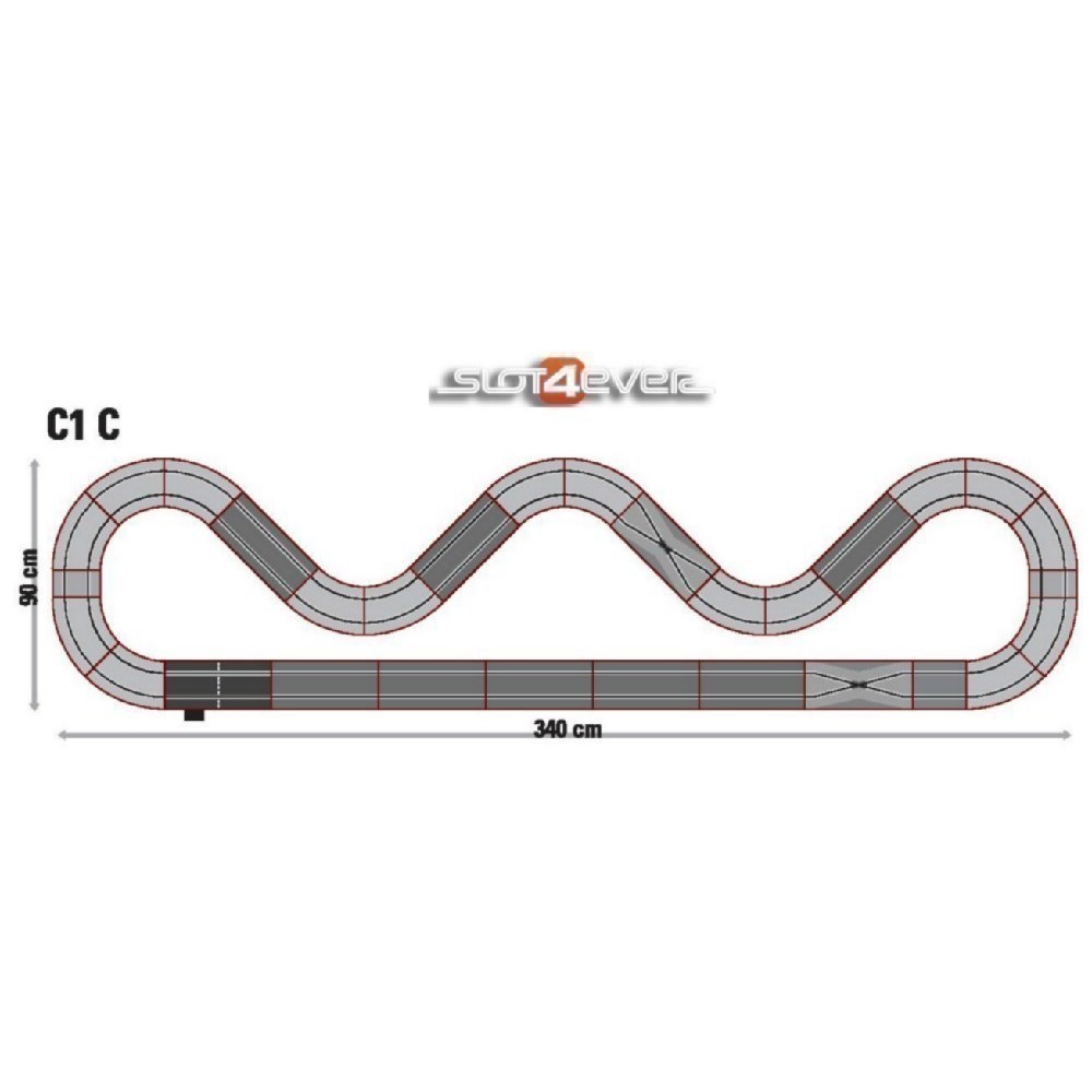 Circuito analógico Scalextric de corrida C1C GT. Circuito C1 expandido em um novo layout tipo C com o pacote de economia