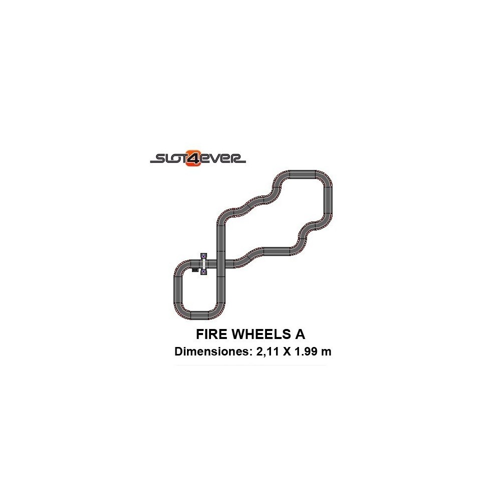 O Circuito Compacto Scalextric Expanded Fire Wheels A É a versão expandida do circuito Compact Fire Wheels.