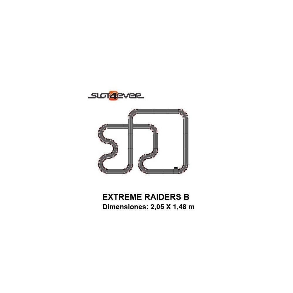 O circuito de Scalextric Compact Extreme Raiders B É a versão superexpandida do circuito Compact Extreme Raiders.