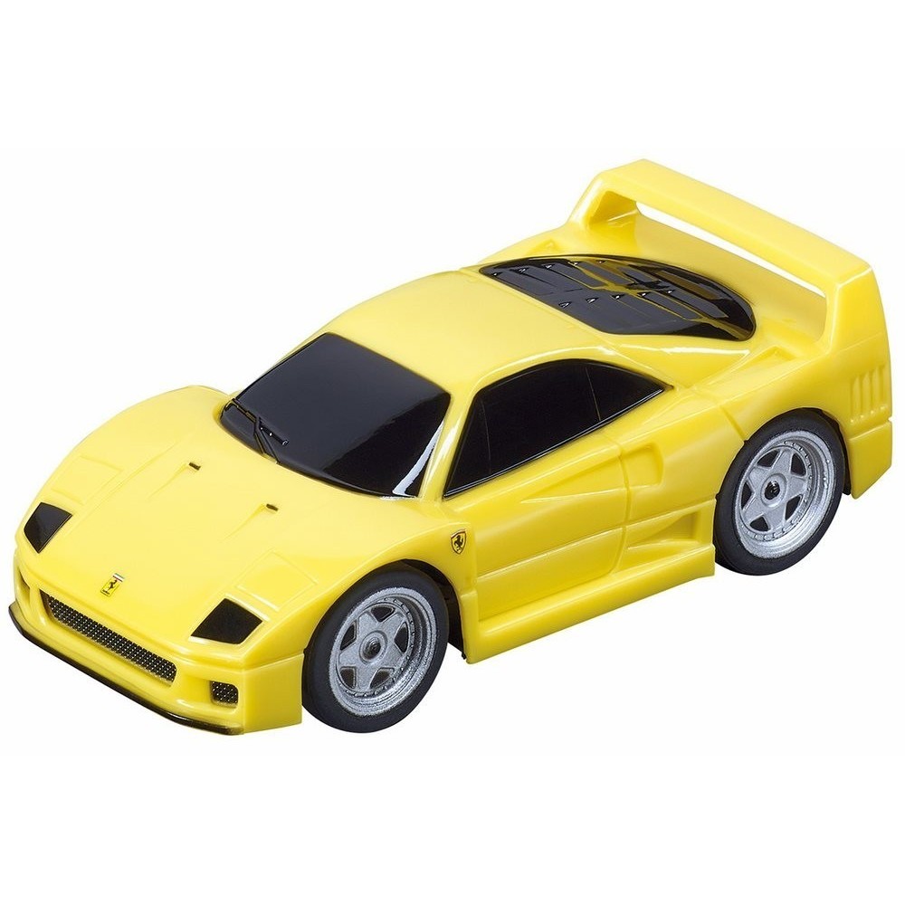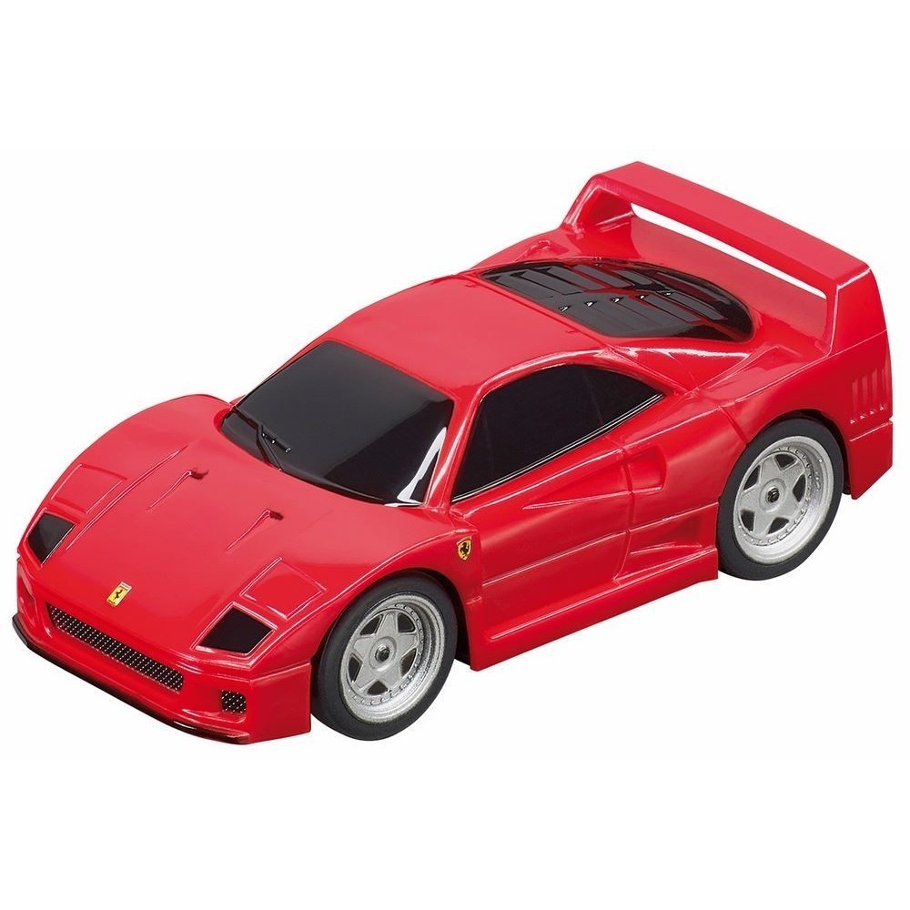 O circuito em forma de 8 inclui 2 espetaculares Ferrari F40 vermelhas e amarelas e também elementos decorativos relacionados à marca italiana Ferrari.