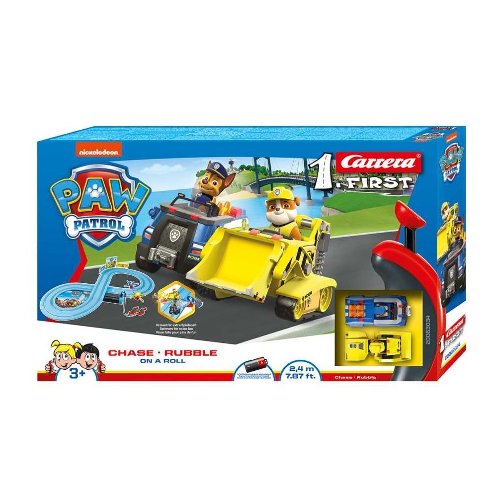 O circuito em forma de 8 inclui os carros do pastor alemão Chase com seu carro de polícia e Rubble com seu carro amarelo. Também elementos de decoração sobre a famosa série de televisão.