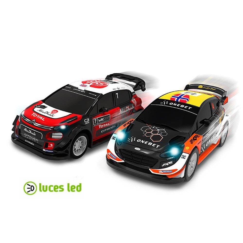 - 2 carros WRC com luz(Citroën C3 WRC e Ford Fiesta WRC)