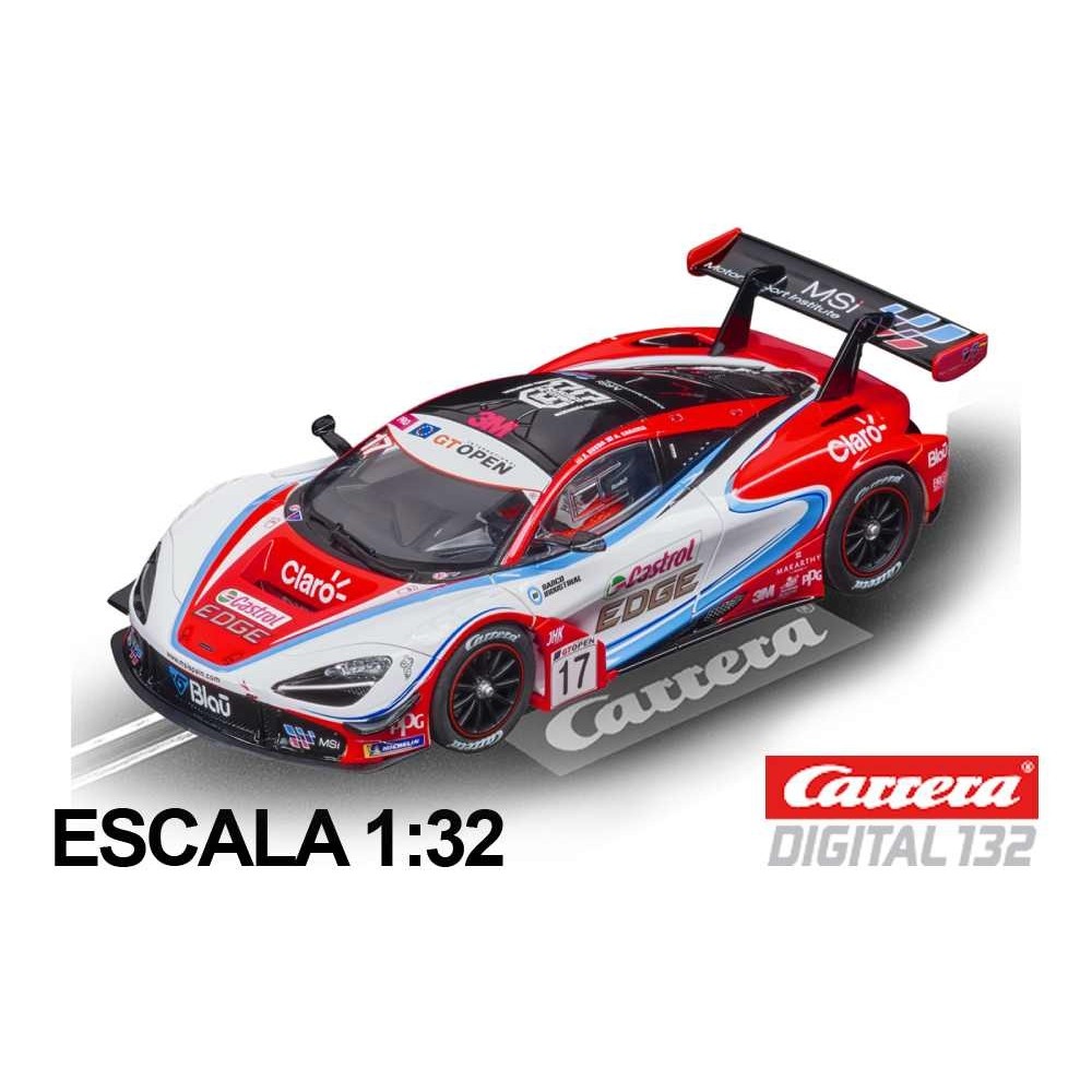 O Carrera Digital 132 McLaren 720S GT3 n17 carro reproduz em escala 1:32 para o sistema Digital Carrera, o carro McLaren GT com decoração Castrol branca e vermelha