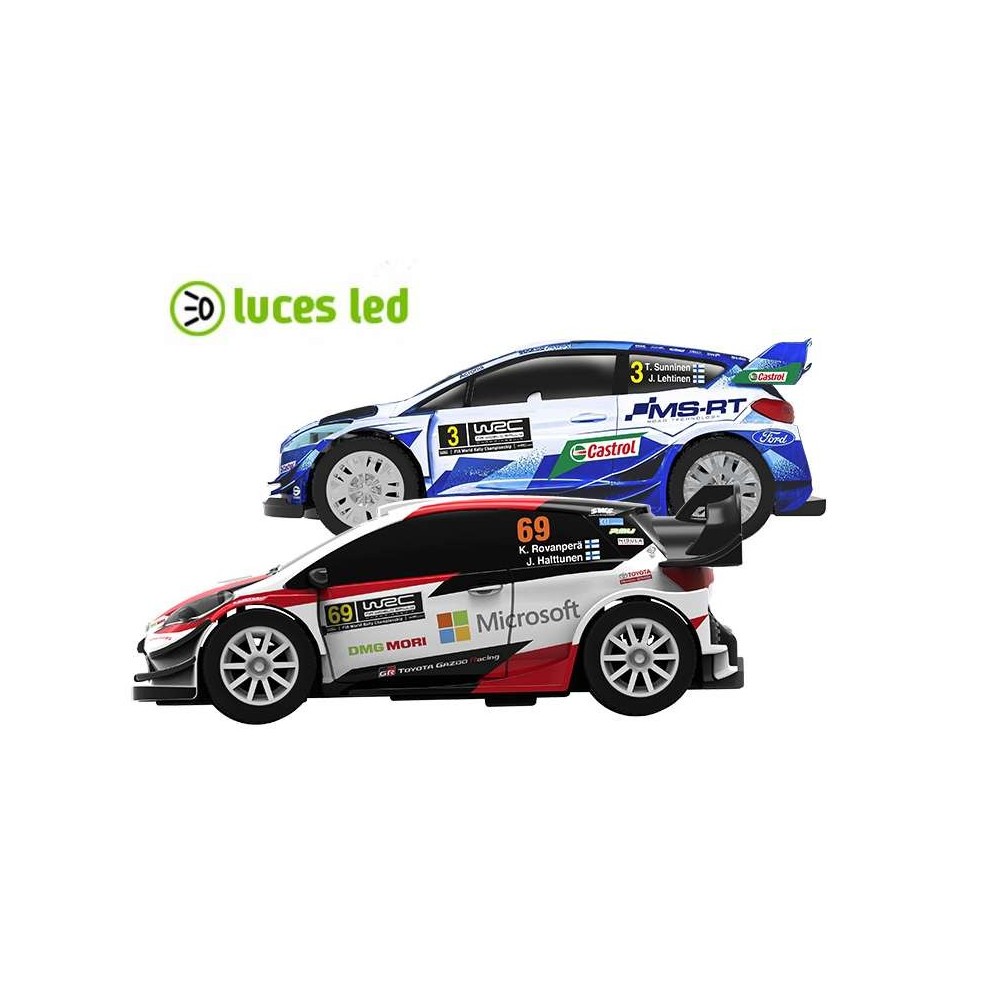- 2 carros WRC com luzes (Ford Fiesta e Toyota Yaris WRC)